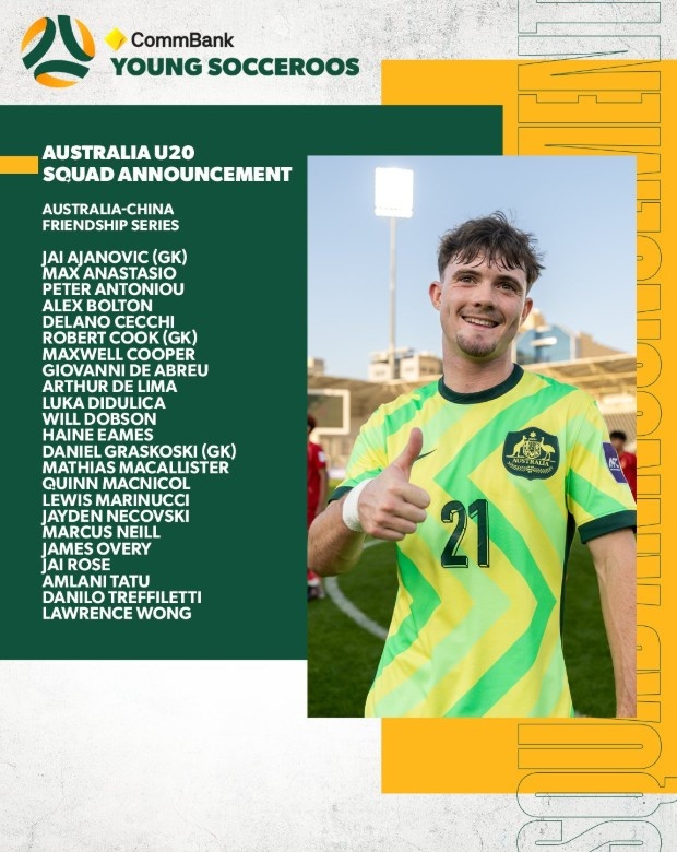 附澳大利亚U20队名单: