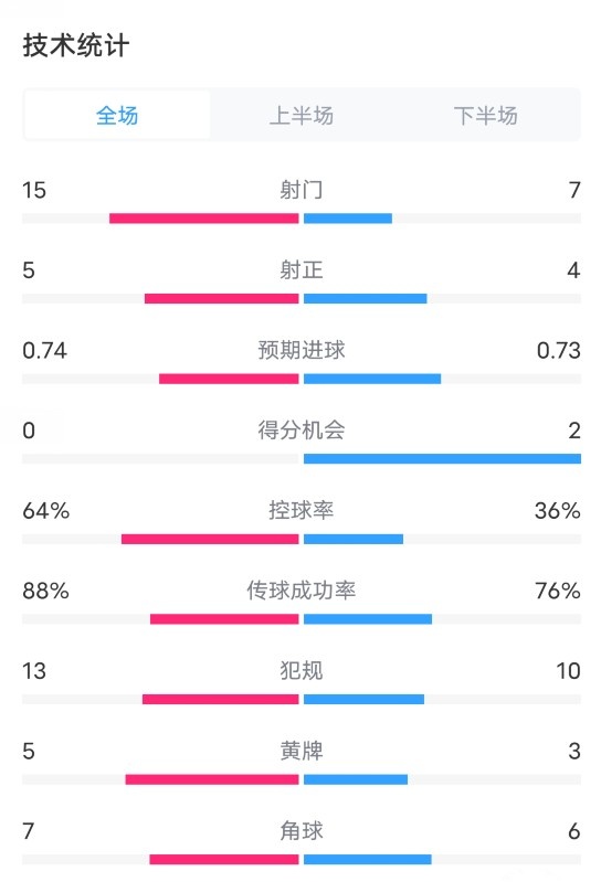 全场比赛数据如下(阿森纳在后):