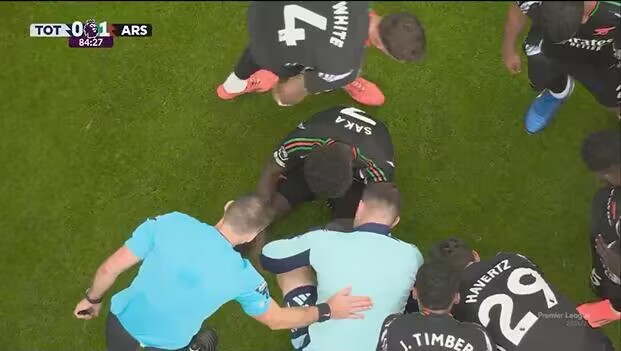 足坛汇9月15日讯 热刺vs阿森纳比赛第85分钟,萨卡坐在地上不起,疑似受伤,随后被恩瓦内里换下。