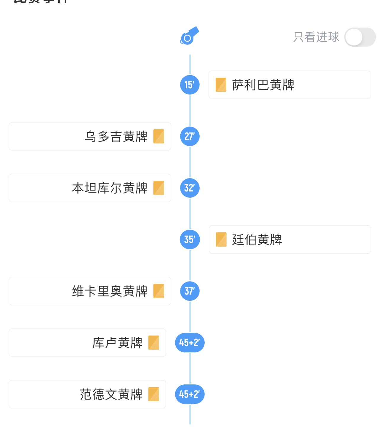 足坛汇09月15日讯 英超第4轮,热刺vs阿森纳。半场双方0-0平,但一共吃到7张黄牌,热刺5张,阿森纳2张,7张黄牌也追平了英超上半场的黄牌数纪录。