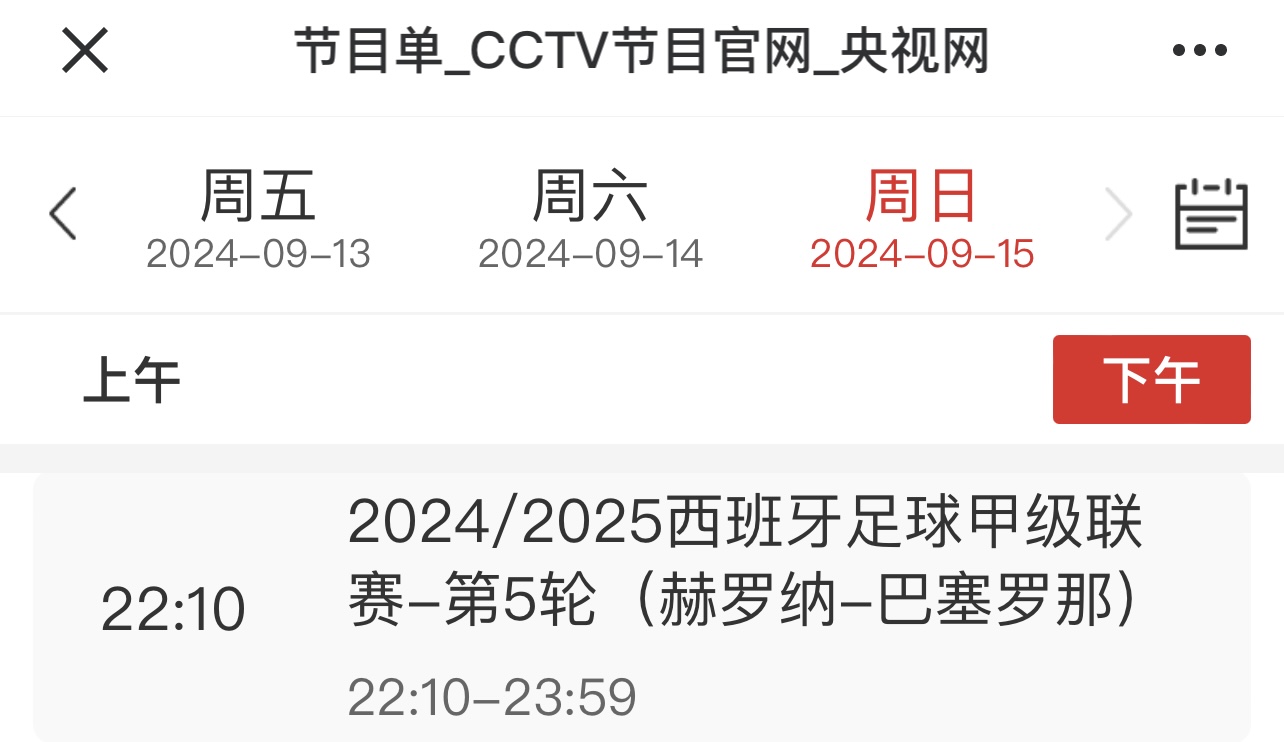 足坛汇09月15日讯 央视节目单显示,今晚22:10,CCTV5将直播西甲第5轮,赫罗纳vs巴塞罗那的比赛。