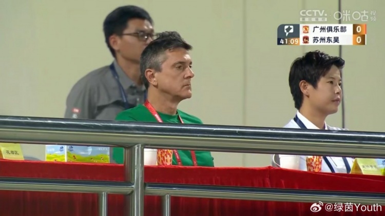 足坛汇9月15日讯 今晚广州队主场对阵苏州东吴的中甲联赛比赛,U21国青主帅安东尼奥也来到了现场。