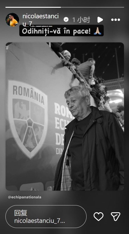 4月8日讯 大连英博球员斯坦丘更新社媒,悼念离世的罗马尼亚名帅卢切斯库。