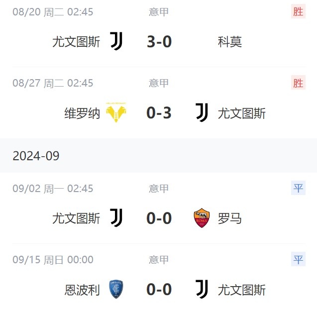 足坛汇9月15日讯 意甲第4轮,尤文客场0-0战平恩波利,尤文本赛季还没有丢过球。