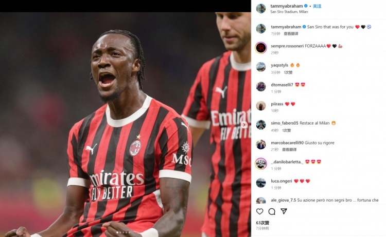 赛后,亚伯拉罕在自己的社媒中发文称,这个进球是献给圣西罗(每个球迷的)。这个贴文被很多米兰粉丝回复,引发热议。