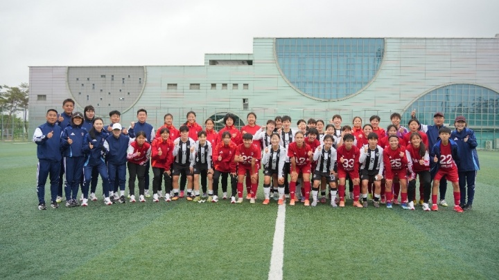 4月20日下午,集训队与韩国京畿道乌山信息高中女队展开交流赛。乌山信息高中是京畿道地区的女足传统学校,曾获韩国高中女足联赛冠军,在2026年春季大赛中获得全国第8名,主场作战实力强劲。比赛前突降大雨,气温骤降,乌山高中队以17-18岁球员为核心,平均年龄较我方大2岁。但雏凤小将们不惧强敌、敢抢敢拼,认真贯彻教练意图。