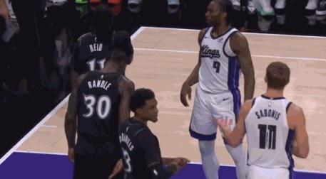 GIF-小萨极慢欧洲步上篮不中,自投自抢补篮被犯规