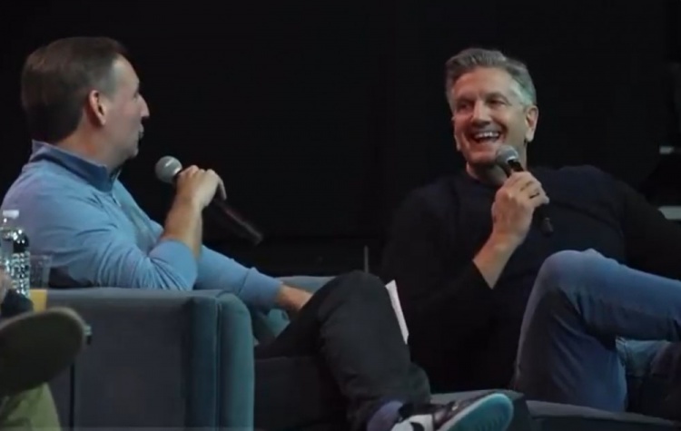 芬奇则调侃:“现在录播客也挺好啊,录着录着你就有资格执教湖人了。”