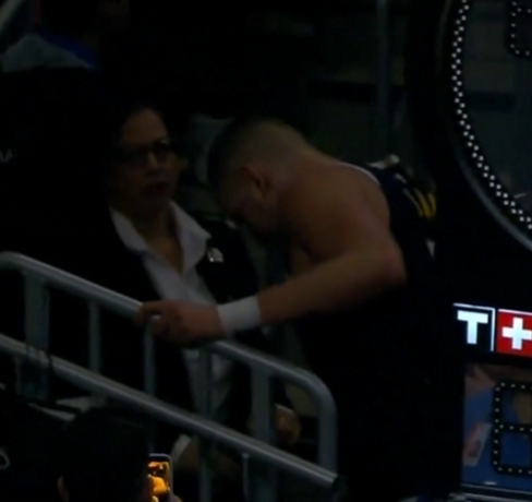 约基奇受伤后疼得后滚翻 起身后扶着护栏走回更衣室左脚不能承重2025-12-30