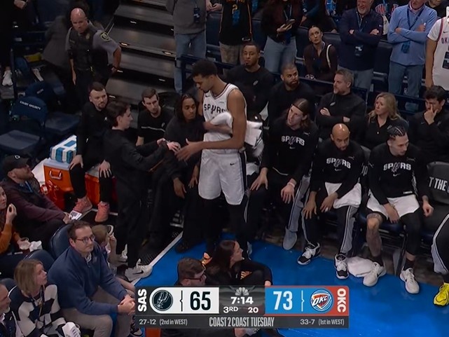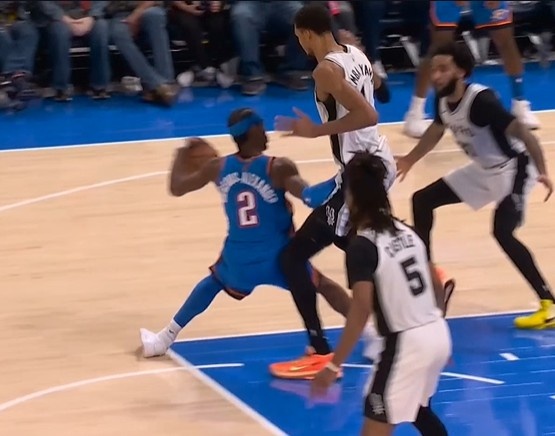本场第二次!SGA突破动作过大吃进攻犯规 文班倒地捂膝盖下场休息2026-01-14