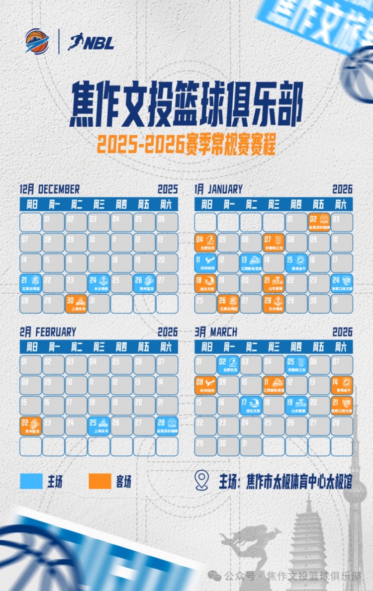 接下来的征程已排满:1月18日客场挑战湖北文旅,1月21日客场对阵山东蜜獾,而1月24日,我们会再回焦作太极体育中心的主场,迎战张家口体文旅。