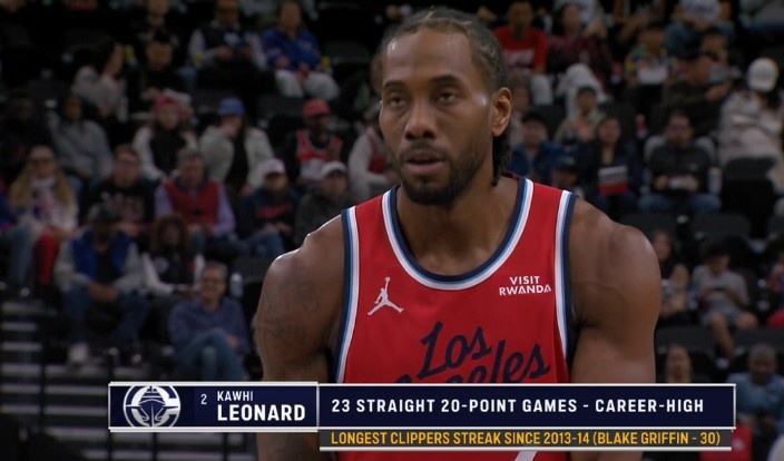 小卡连续23场20继续创个人纪录 13-14赛季格里芬后快船队史最长2026-01-26