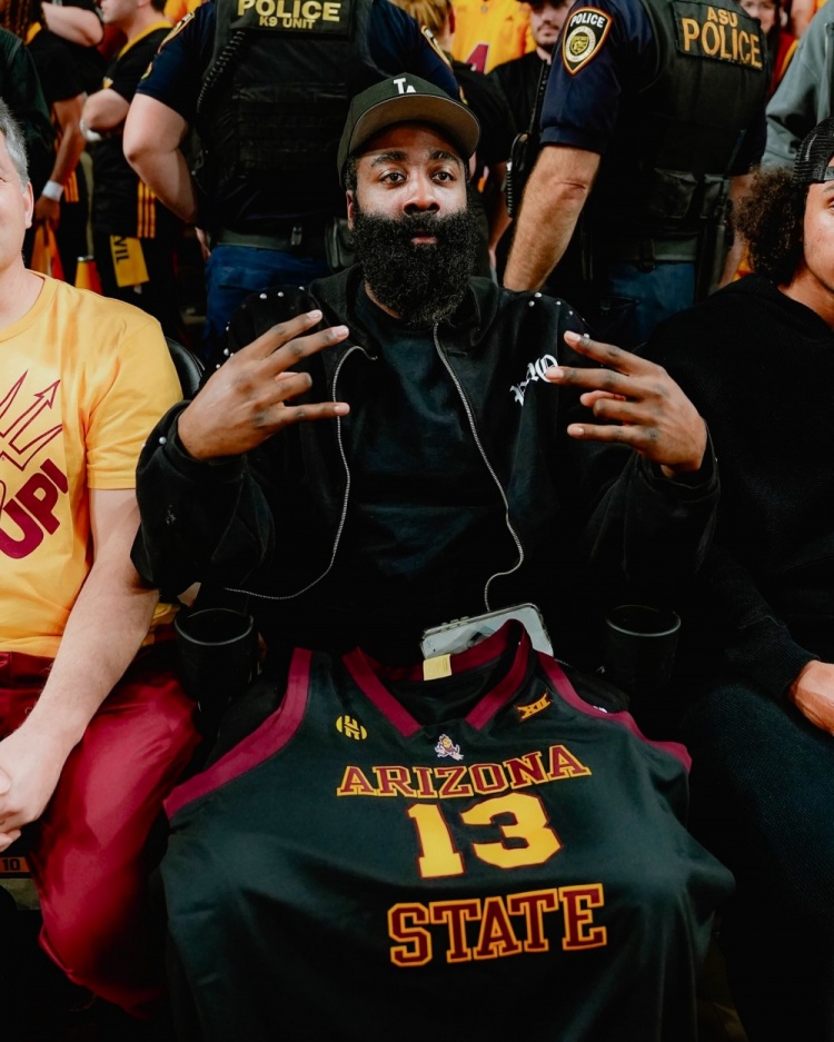 前亚利桑那州立大学球员哈登,今天也回到母校观看这场宿敌对决。快船明天将在客场对阵太阳,本场比赛也算是顺道回母校看看。