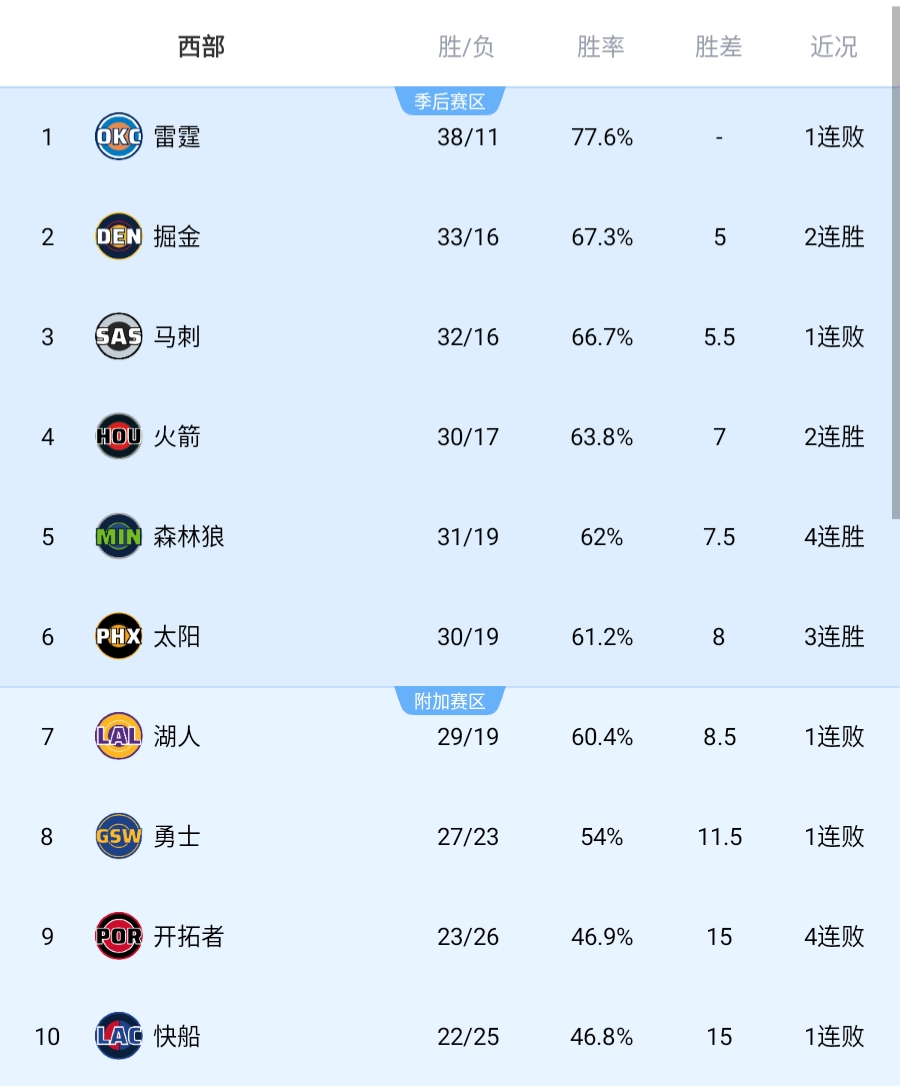 此役过后,湖人战绩29胜19负被太阳反超,暂时掉入附加赛区。