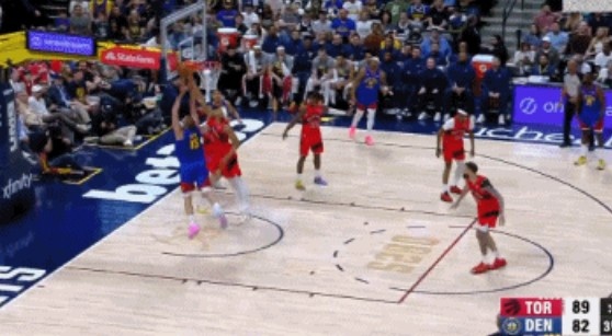 GIF-约基奇背身单打巴恩斯转身上篮被直接帽下