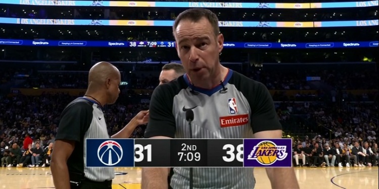 詹姆斯突破倒地左手有些不舒服 起来跟裁判示意被打手了2026-03-31