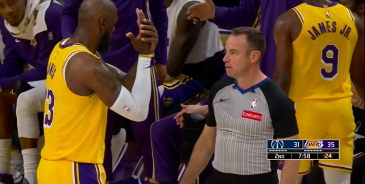 詹姆斯突破倒地左手有些不舒服 起来跟裁判示意被打手了2026-03-31