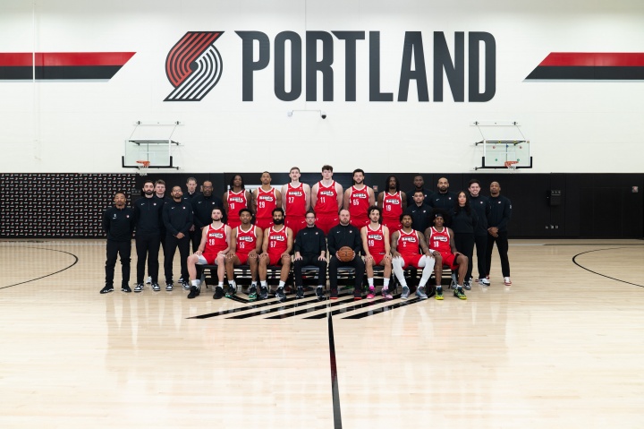 杨瀚森则是回到了开拓者拍摄了全家福~