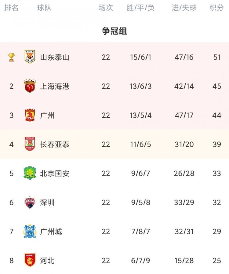 赛季最终积分榜