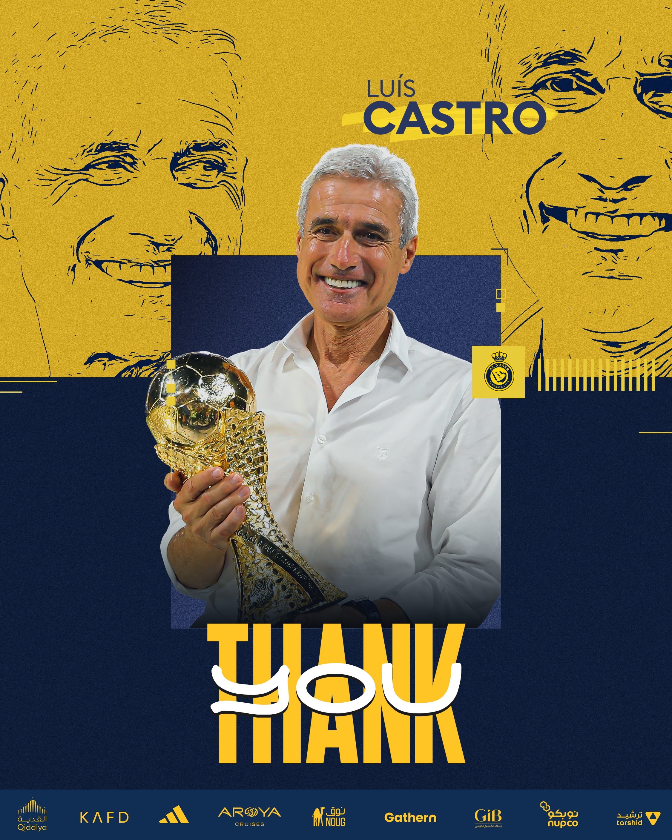 利雅得胜利官方宣布,球队63岁的葡萄牙籍主帅路易斯-卡斯特罗下课。