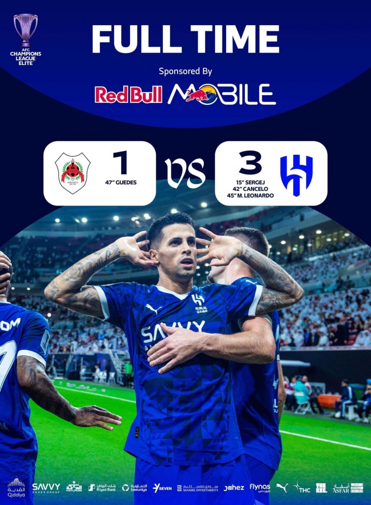 新月3-1击败赖扬取亚冠开门红,坎塞洛传射建功。