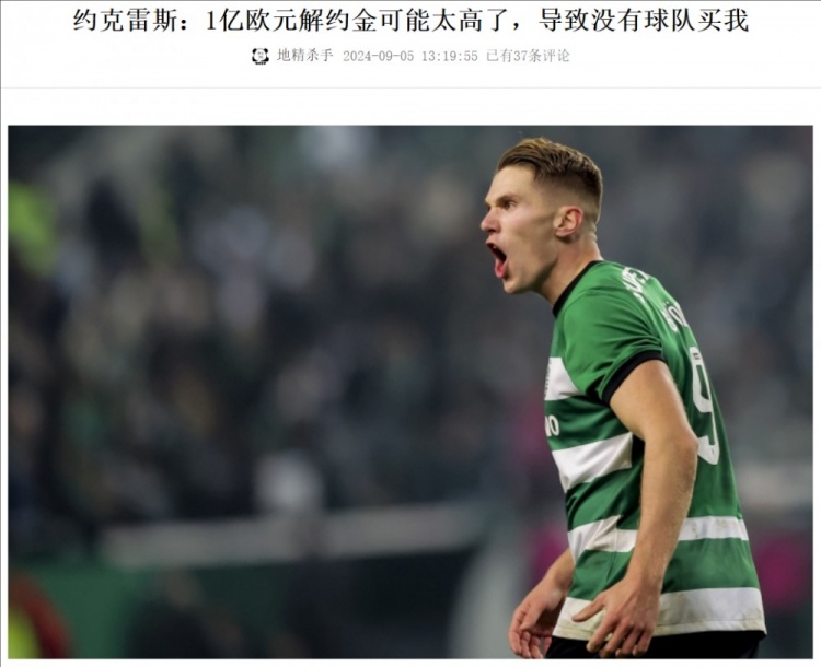 此前报道称,约克雷斯合同中有价值1亿欧元的解约金条款,今夏阿森纳等多支豪门也曾关注过他,但因为价格太高而放弃。不久前接受采访时,约克雷斯自己也承认1亿解约金或许太高,让他的转会变得复杂。