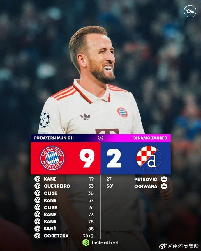 赛后,著名詹俊在微博评论道:“进球数不过来的中秋夜……拜仁横扫萨格勒布迪那摩,凯恩大四喜成为在欧冠赛场上进球最多的英格兰球员。”