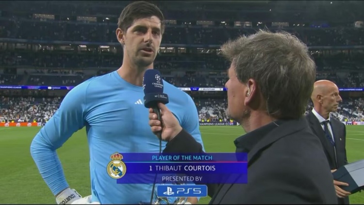 库尔图瓦:有一个孩子穿着守门员的球衣,还举着一块牌子。让他们开心总是很好的,而且球场上没有多少孩子穿着守门员的球衣。我希望通过送给他球衣,让他能在未来实现自己的梦想并站在这里。”