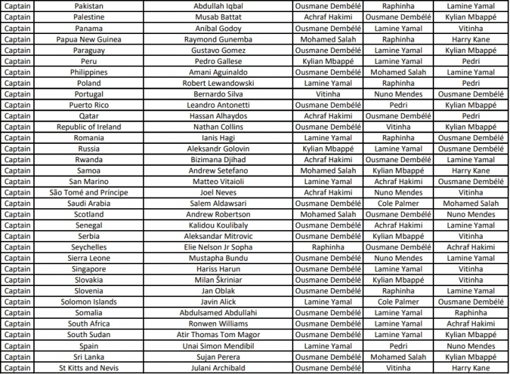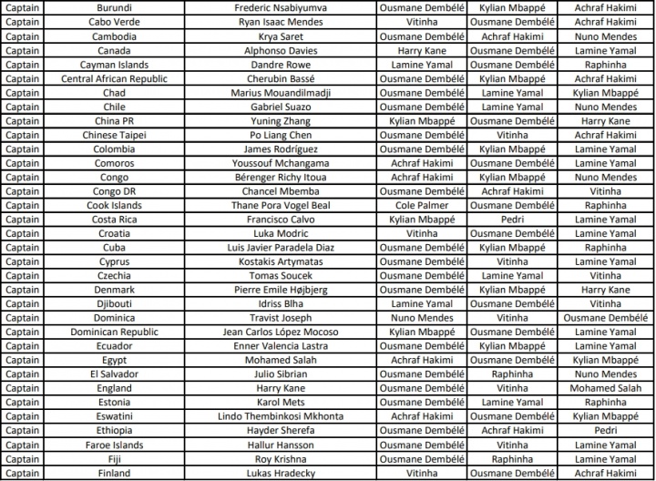 队长投票详情(文字顺序:国家/地区 投票人 1选 2选 3选)