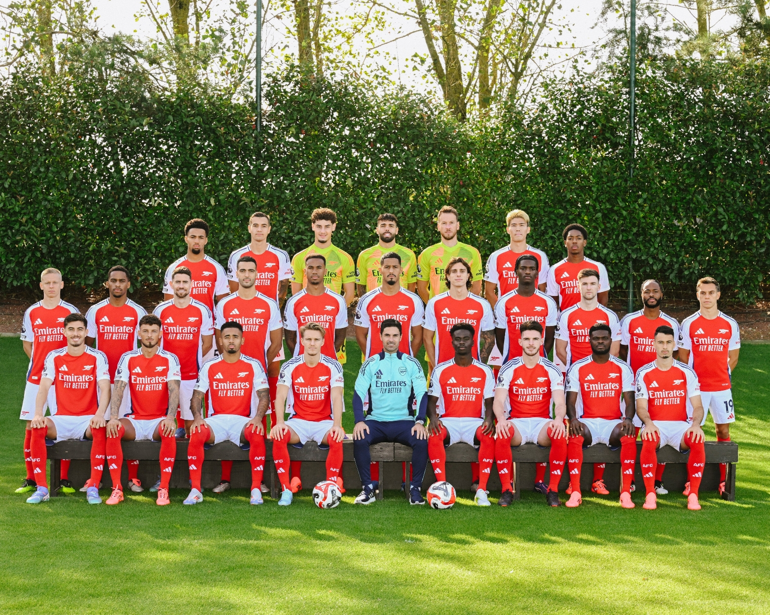 前排:哈弗茨、本-怀特、热苏斯、厄德高、阿尔特塔、萨卡、赖斯、托马斯、马丁内利