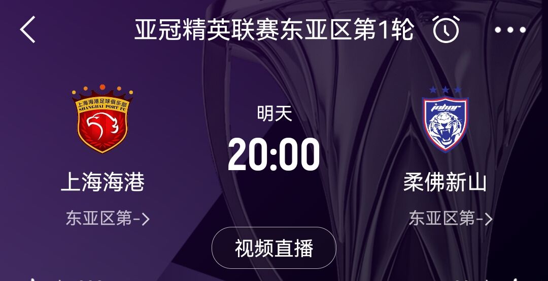 明日上海海港也将出战亚冠精英联赛,北京时间18日晚20点,上海海港将在主场迎战马来西亚球队柔佛新山。