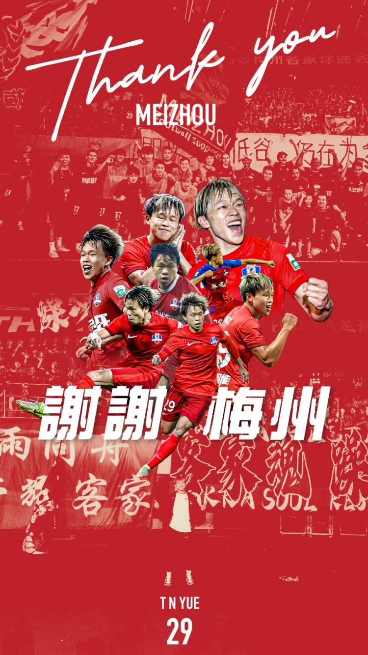 最后,要感谢每一位穿上红色球衣的球迷。你们的每一声呐喊、每一次打气,至今仍然刻骨铭心。有一句球迷对我说的话,我一直记在心里 ——「梅州永远都是你家,欢迎回来。」