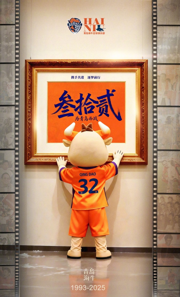 32年来,感谢所有的球迷朋友,所有的教练、球员,所有的合作伙伴,我们一起为青岛这座城市书写属于海牛的故事篇章。未来,让我们一起携手共进,逐梦前行,继续为青岛而战,为这座城市创造更多的辉煌!