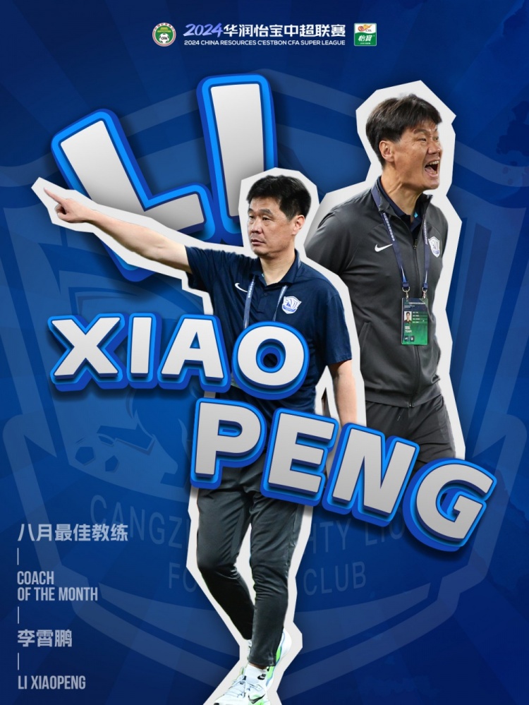 足坛汇9月17日讯 中超官方公布了8月最佳教练人选,沧州雄狮主帅李霄鹏当选,他率领球队取得2胜1平的不败战绩。