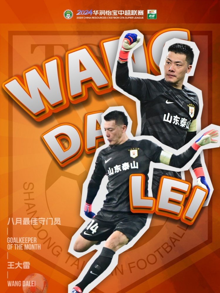 在2024中超联赛8月份的赛事中,山东泰山门将王大雷所把守的球门在3场比赛中共被射正20次,他扑出了其中的16次射门,扑救成功率达到80%。在第23轮山东泰山3比0击败成都蓉城的比赛中,王大雷表现神勇,将对手8次射正球门的机会全部化解,并与上海申花的前锋安德烈-路易斯共同当选了该轮的最佳球员。