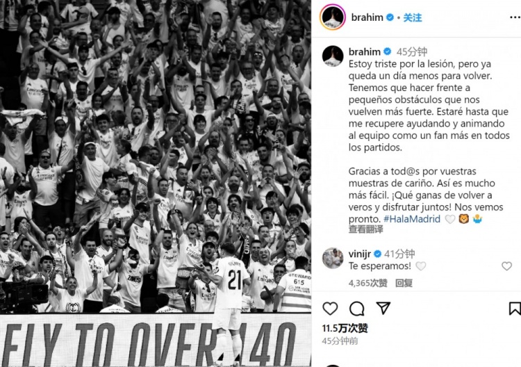 迪亚斯本人也通过社媒发文:“我对此次受伤感到难过,但现在距离复出又近了一天。我们必须经历那些小小的挫折,它们能让我们变得更强。”