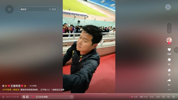 不少球迷晒出前辽足球员肇俊哲前场观看比赛的动态,肇俊哲也与球迷们进行了互动。