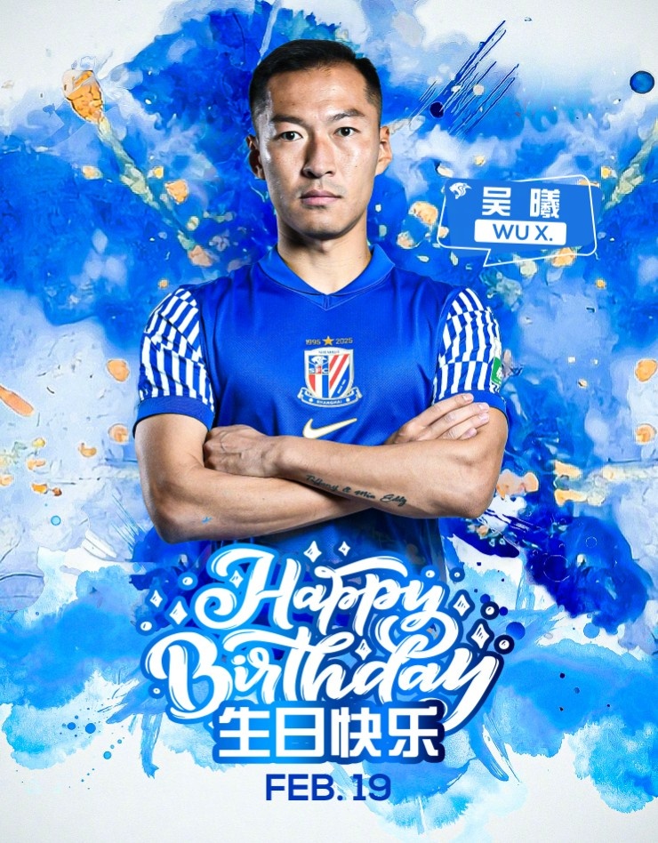 2月19日讯 上海申花官方发文,为吴曦庆祝37岁生日。