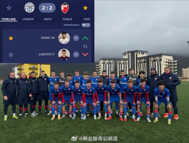 2月21日讯 据博主“稀盐酸青训频道”报道,万项上演贝尔格莱德红星U17队首秀。