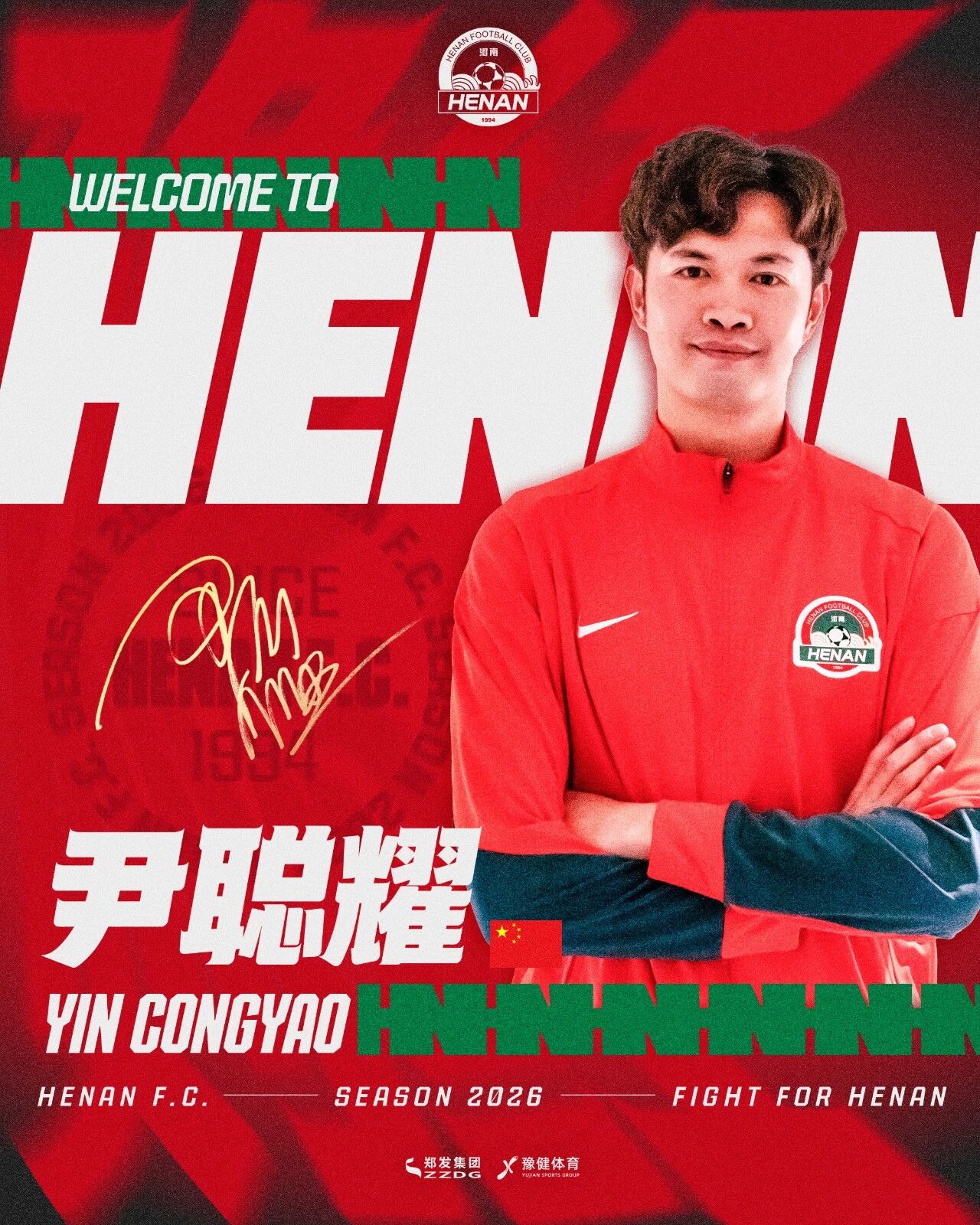 欢迎尹聪耀加入河南大家庭,期待你快速融入球队,与全体将士并肩作战,为河南足球拼下更多荣耀!