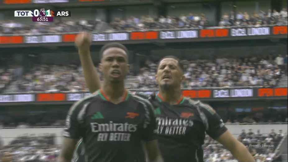 足坛汇9月15日讯 热刺vs阿森纳比赛第64分钟,萨卡开出角球,加布里埃尔头球破门,阿森纳1-0领先热刺。