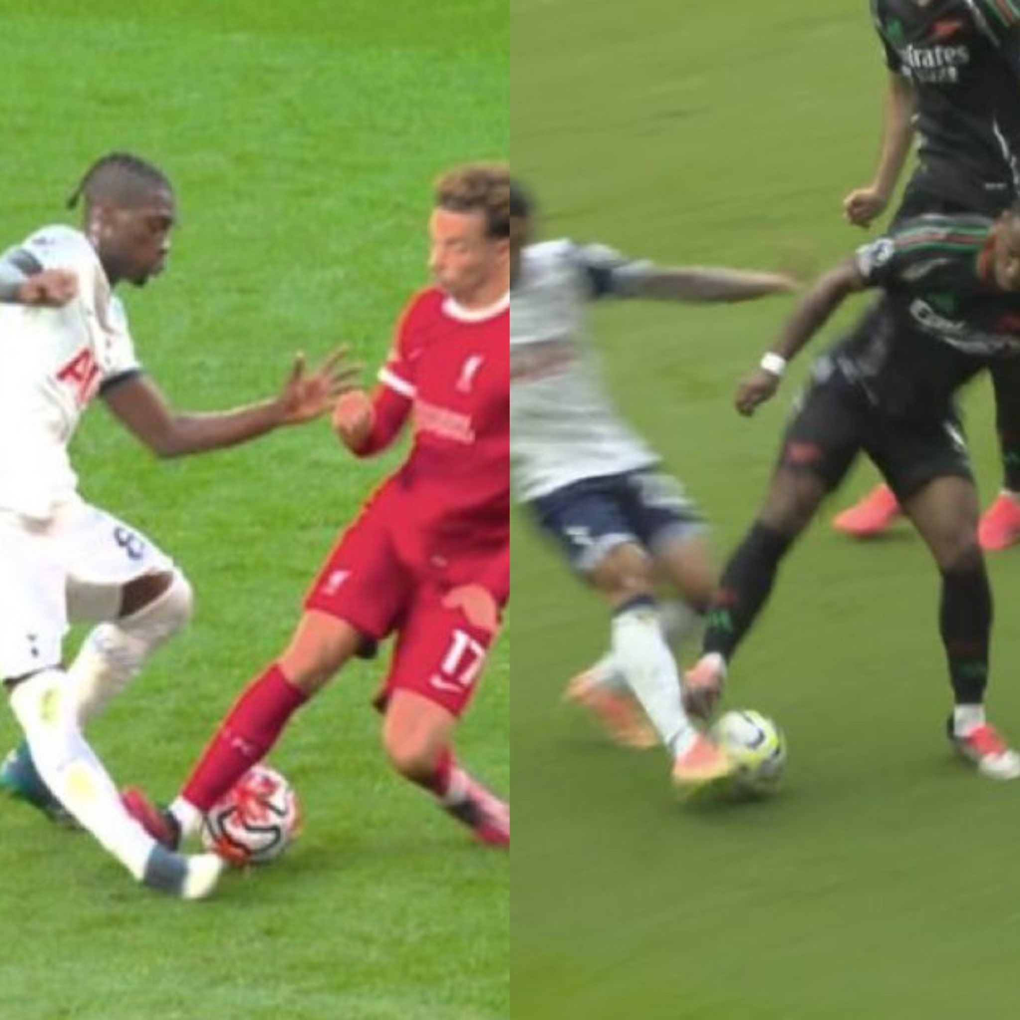 上赛季,琼斯因危险动作被直红罚下,而廷伯本场做出类似动作只吃到黄牌。