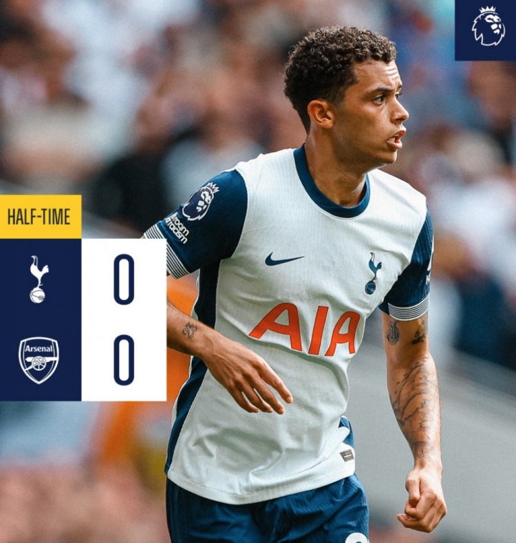 足坛汇9月15日讯 热刺在本轮英超焦点战对阵阿森纳,两队在上半场0-0战平。