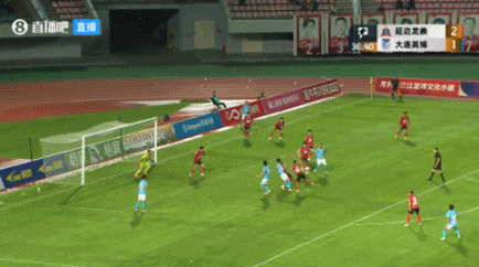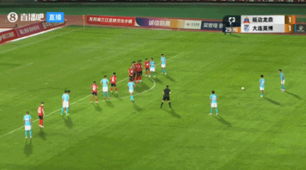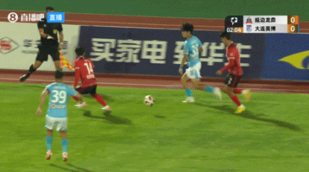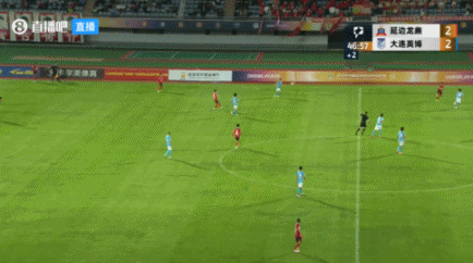 伤停补时2分钟。上半场比赛结束, 延边龙鼎2-2大连英博。