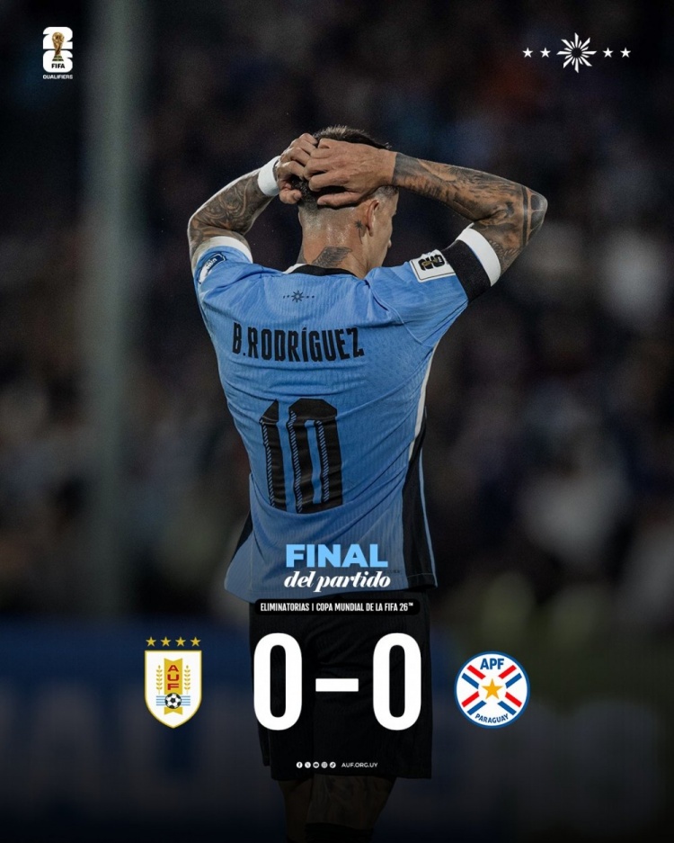 足坛汇9月7日讯 在北京时间今天上午进行的南美世预赛中,乌拉圭主场0-0战平巴拉圭。乌拉圭连续5场比赛常规时间不胜。
